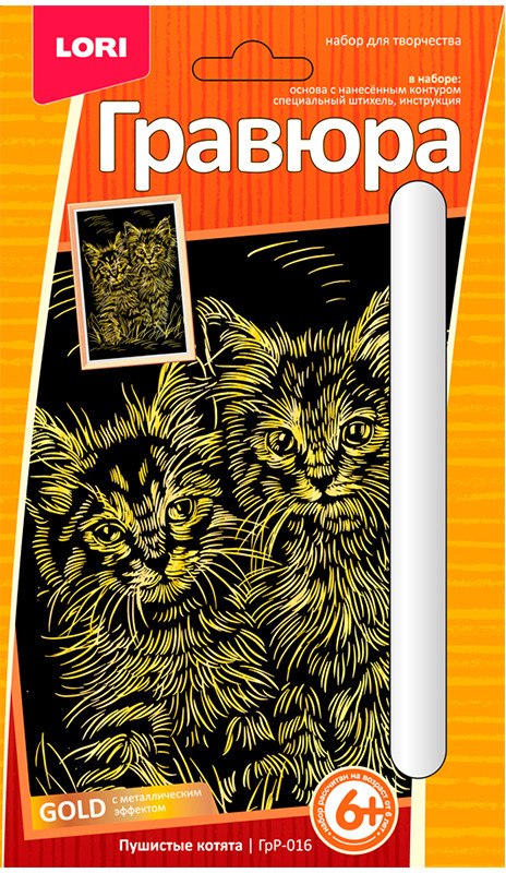 Lori Гравюра малая с эффектом золота «Пушистые котята»В данный момент этот товар отсутствует в продаже. Возможно, у нас найдется аналогичный или похожий товар здесь. Малая гравюра «Пушистые котята» с металлическим эффектом «под золото» содержит в комплекте основу, на которую нанесена краска с контуром рисунка, специальный штихель и инструкцию. Контур изображения уже нанесен на черный фон основы. С помощью специального штихеля изображение процарапывается по контуру, и из-под слоя краски появляется блестящая золотистая основа. В результате получается контрастный рисунок с эффектным изображением. |