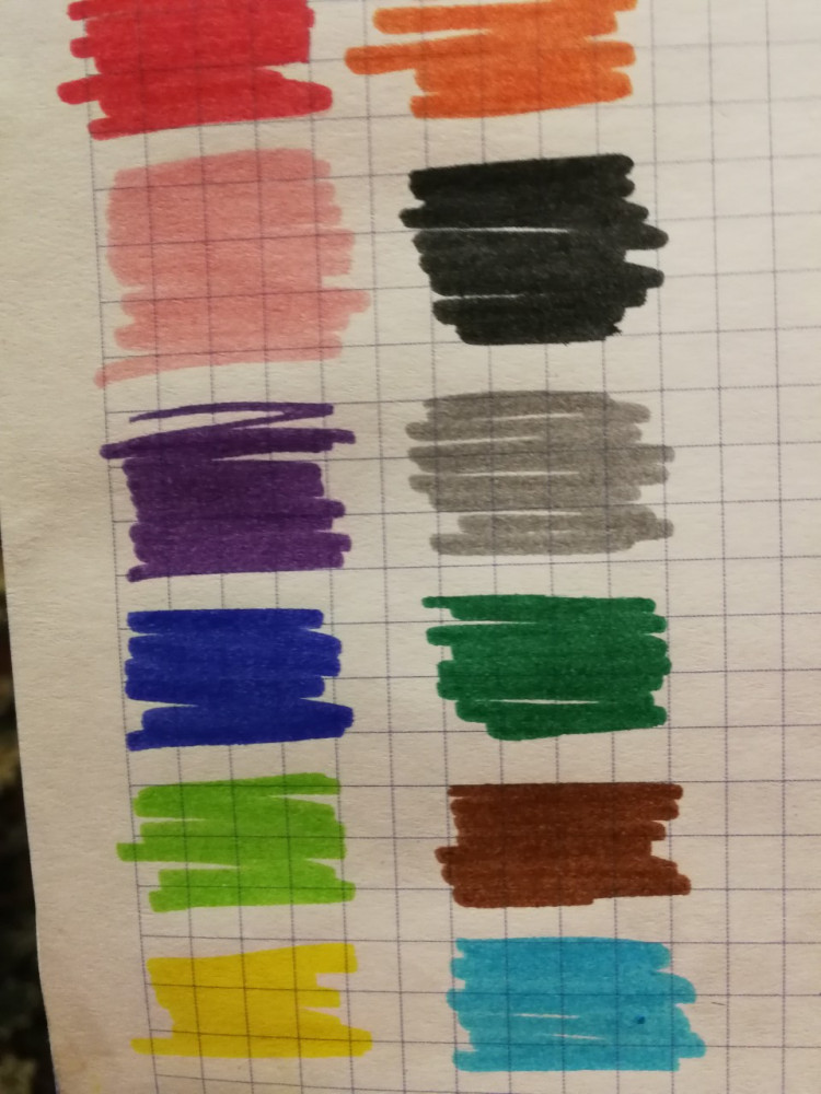 Очень качественные фломастеры, цвета насыщенные и сочные. Стержень тоненький, что удобно для закрашивания мелких деталей, но и объемные детали закрашивается легко и быстро. Единственный минус, после использования некоторых цветов, нужно пару секунд подождать, чтобы рисунок высок и не размазался. Закажу ещё, если появится вариант с большим количеством цветов.