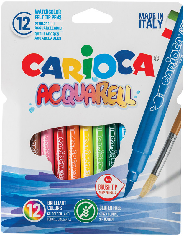 Carioca Фломастеры акварельные с кистевым пишущим узлом (смываемые, 12 цветов)-20% +95 насыщенные цвета тонкий наконечник удобный захват акварельный эффект подходит детям