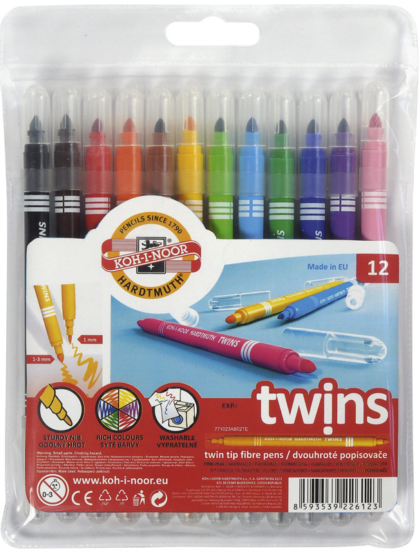Koh-I-Noor Фломастеры двусторонние «Twins» (смываемые, 12 цветов, 12 шт.)В данный момент этот товар отсутствует в продаже. Возможно, у нас найдется аналогичный или похожий товар здесь. Серия: Дракончик Набор двухсторонних фломастеров. Каждый фломастер имеет два наконечника разной толщины. |