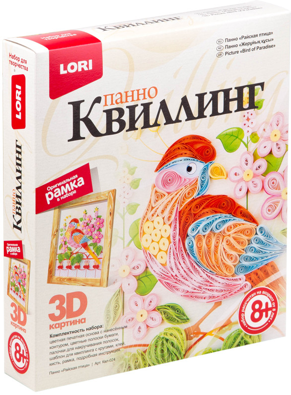 Lori Квиллинг-панно «Райская птица»В данный момент этот товар отсутствует в продаже. Возможно, у нас найдется аналогичный или похожий товар здесь. Серия: Квиллинг Набор для детского творчества разнообразит досуг детей и увлечет их созданием 3D-картины с изображением райской птицы. В красочной коробке находится все, что может потребоваться для работы. |