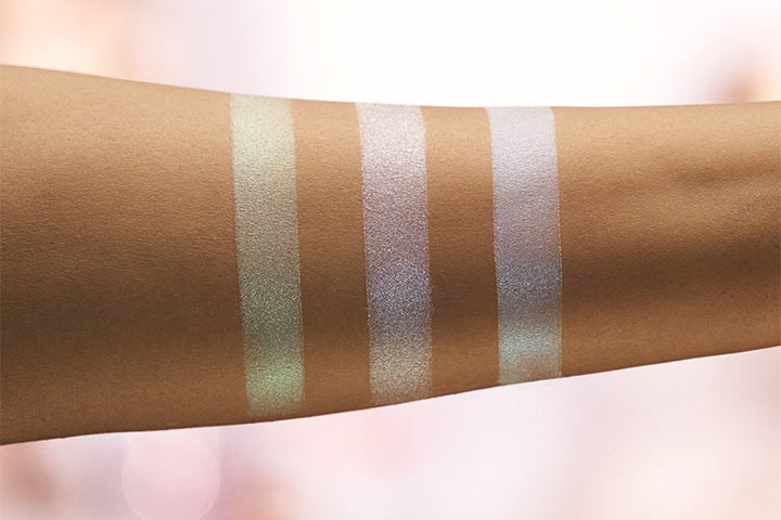 Хорошие тени. Нежные. Неплохо ложатся на веки, не осыпаются. При нанесении влажным способом дают интересный эффект. Можно использовать как хайлайтер. Голографические - имеют отлив сине-голубой и розово- красный. Сделать акцент идеально. Фото плохо передает реальные цветовые переливы.