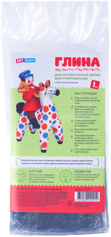 ArtSpace Глина для лепки (голубая, 1 кг)В данный момент этот товар отсутствует в продаже. Возможно, у нас найдется аналогичный или похожий товар здесь. Из глины возможно изготавливать игрушки и посуду – материал затвердевает в естественных условиях. При желании их можно обжечь и покрасить для придания законченного вида. |