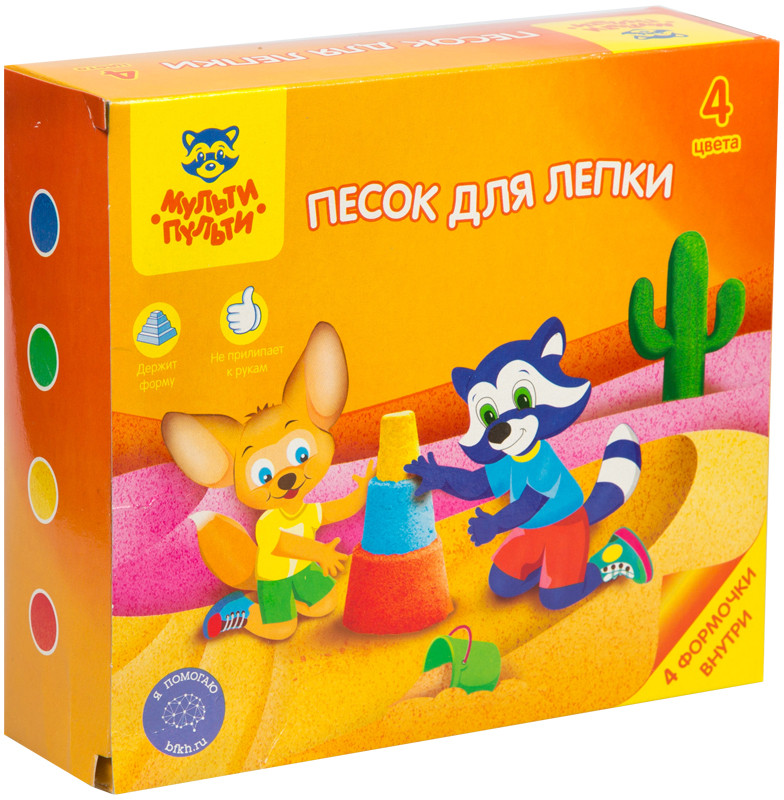 Мульти-Пульти Песок для лепки (4 формочки, 4 цвета)-20% +81 не твердый яркие цвета интересные формочки увлекательная игра