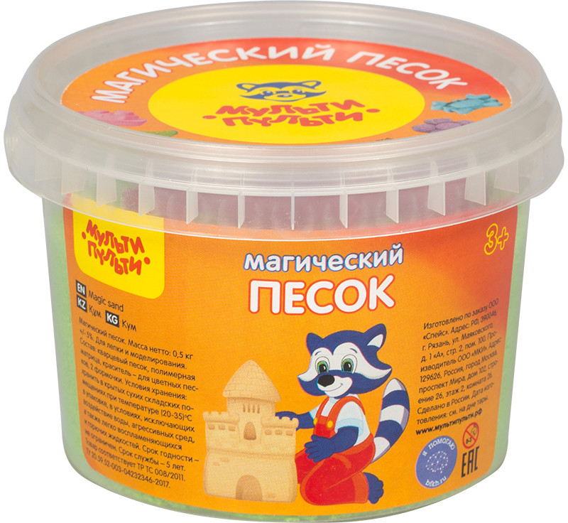 Мульти-Пульти Песок для лепки (2 формочки, зеленый)-20% +44 не рассыпается яркий цвет без запаха формочки одинаковые