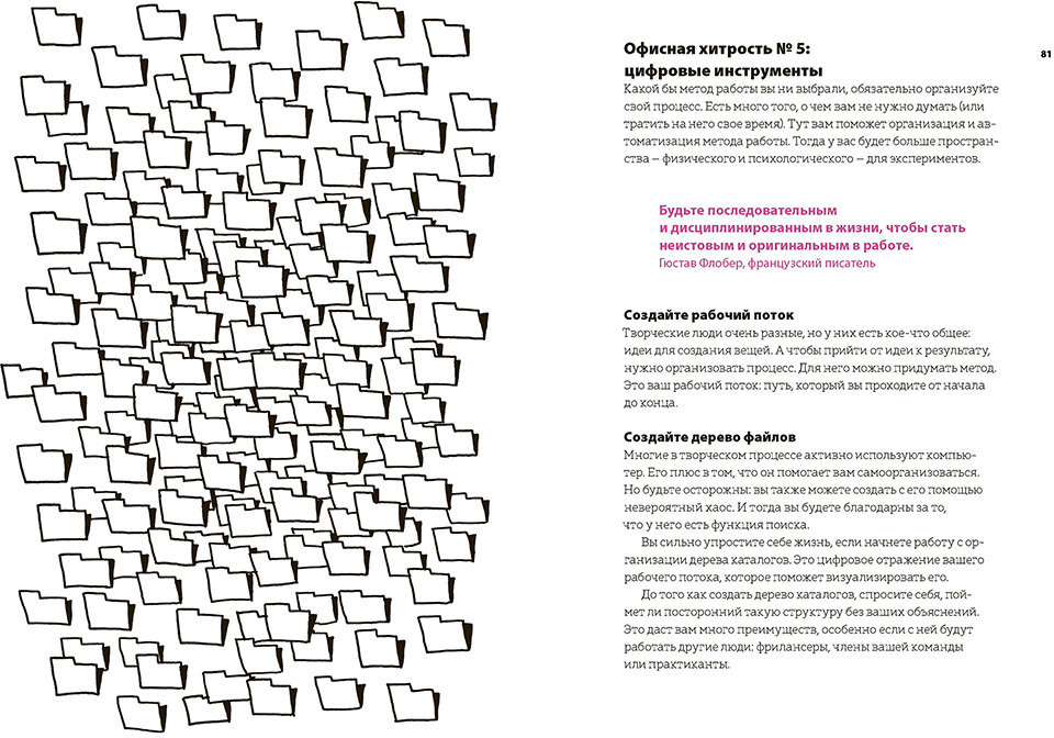 Отличный мотиватор на рабочем столе творческого человека. Качество книги шикарно, обложка матовая, очень приятно держать в руках. Все кратко и ясно написано, по сути это не книга а интересная брошюра на 100+ страниц с простыми схемами и советами для увеличения продуктивности.