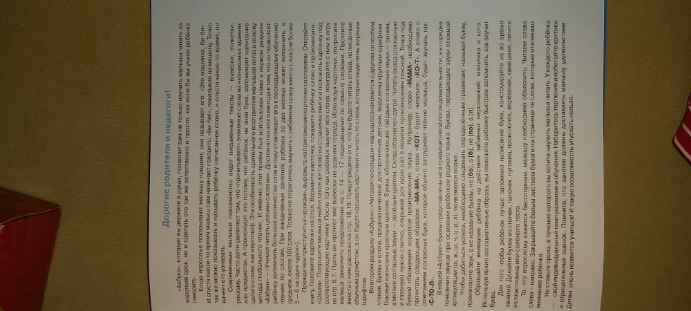 Отличная книга. До этого пытались заниматься по букварю Жуковой, не пошло. Если честно перед занятиями не верилось, что ребенок (4 года) сможет визуально запоминать слова типа "поликлиника", но всего через 2 дня он уже выучил 15 слов и дальше учит по 6 в день. Скоро будем переходить к буквам и слогам.