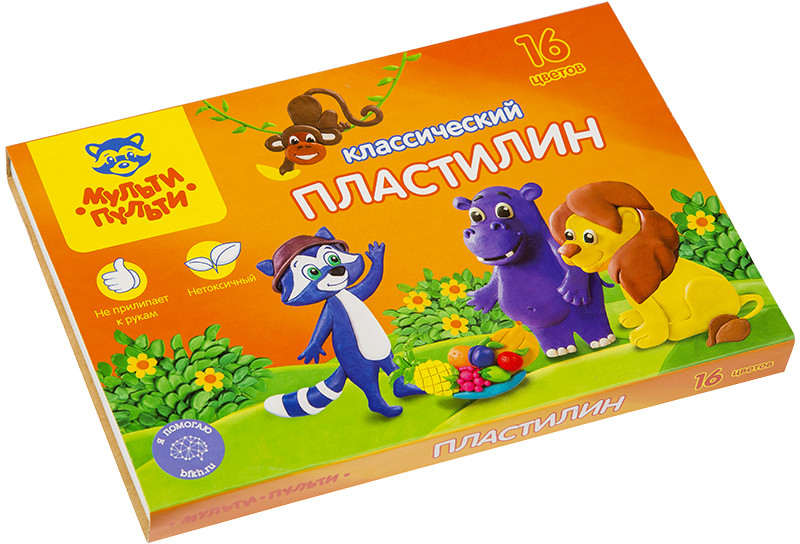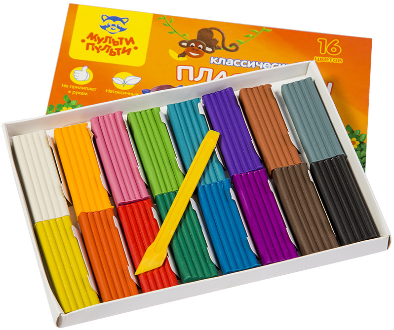 Мульти-Пульти Пластилин (16 цветов, стек)-20% +45 яркие цвета мягкий не липнет легко лепится