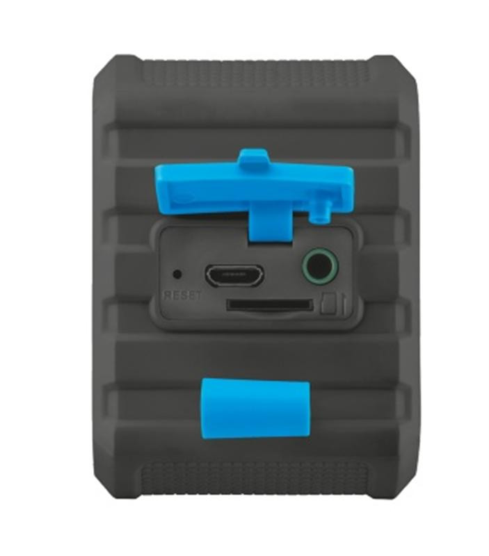 Кнопки для управления громкостью и медиафайлами, для принятия звонков и управления камерой телефона. Встроенный медиаплеер считывает музыку с карты micro SD (поддерживается множество форматов). Компактный размер, мощный звук (максимальная мощность — 14 Вт). Перезаряжаемый аккумулятор (более 10 часов воспроизведения). Встроенный микрофон для телефонных звонков. Водонепроницаемый корпус (стандарт IPX5). Модуль Bluetooth с радиусом действия 10 м. Прорезиненный ударопрочный корпус.