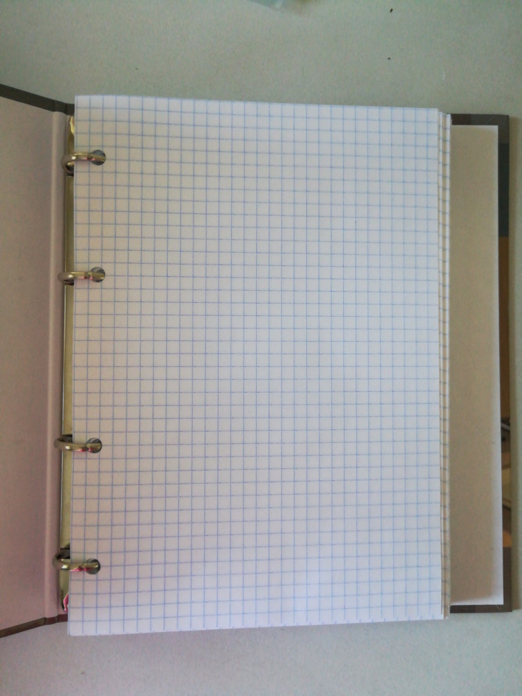 Обложка очень плотная (что хорошо), а внутри обычная тетрадь в клетку. в принципе в последующем не обязательно будет покупать специально "внутренности", можно будет покупать обычные тетрадки и вставлять листы...