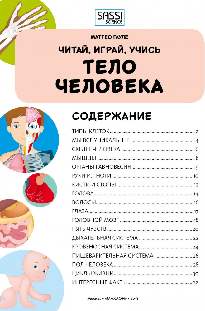 Изучи тело человека. Рассмотри все кости скелета и мышцы, познакомься с системами кровообращения, дыхания и пищеварения, узнай, как устроен головной мозг.