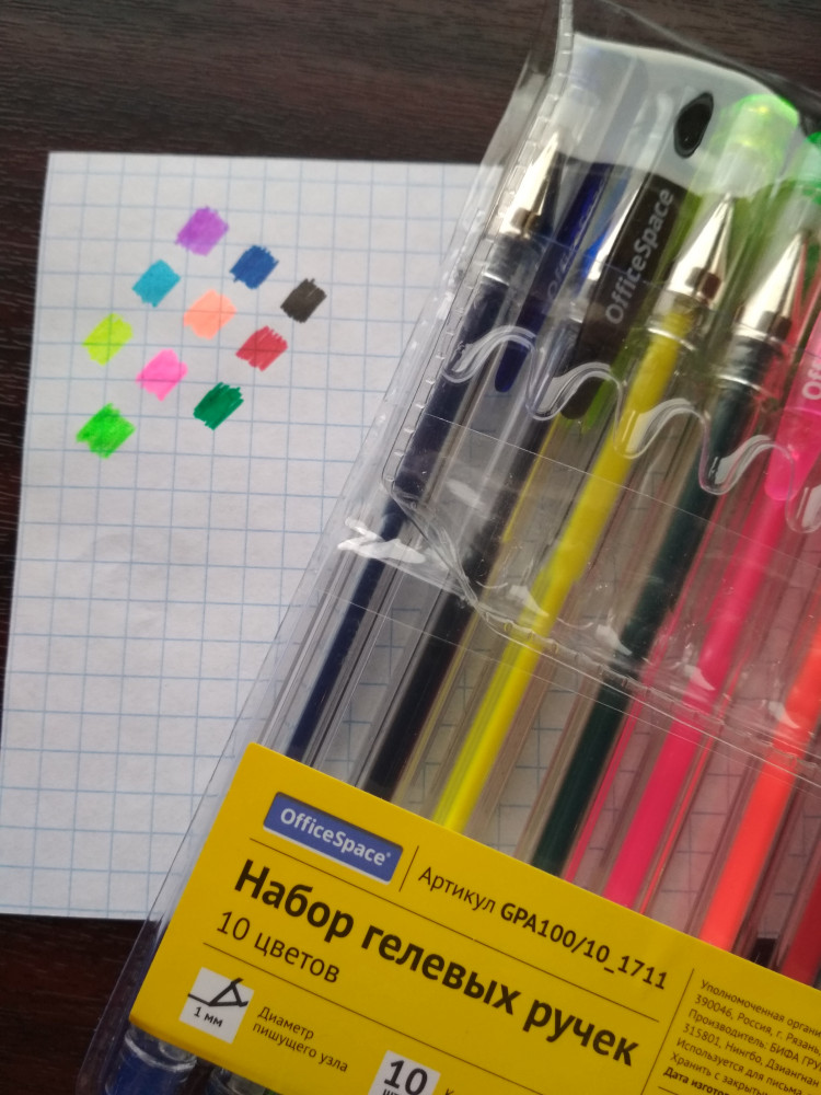💳 Оплатить за товар можно при получении 🇰🇿 Есть бесплатная доставка по Казахстану от 1 дня 🎁 Копите бонусы с каждой покупки Набор гелевых ручек отлично подойдет для оформления конспектов и других текстов, а также альбомов, дневников и открыток. Ручка имеет пишущий узел толщиной 1 миллиметр, который оставляет на бумаге след в 0,8 миллиметра. Корпус изделий выполнен из прозрачного пластика, колпачок соответствует цвету чернил. |