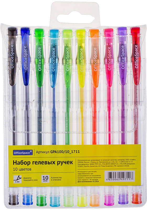 OfficeSpace Набор гелевых ручек (10 цветов)-30% +23 яркие цвета тонкий стержень плавное письмо мало чернил