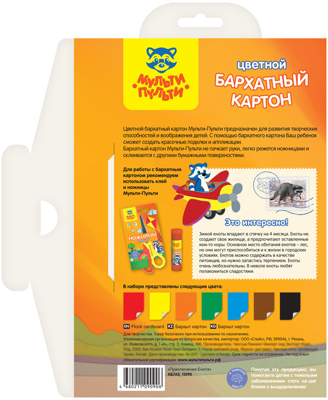 Мульти-Пульти Картон бархатный (7 цветов)В данный момент этот товар отсутствует в продаже. Возможно, у нас найдется аналогичный или похожий товар здесь. Картон формата А5 с нанесенным флоком (ворсом), имитирует поверхность бархатной ткани и отличается насыщенностью, глубиной тона, плотностью. В папке с замком для удобного хранения и европодвесом 7 листов различных 7 цветов. Бархатный картон является прекрасным декоративным материалом. Он широко применяется для выполнения декоративных и художественно-оформительских работ, изготовления сувениров, изделий флористики, аппликаций, используется в качестве основы для поделок. |