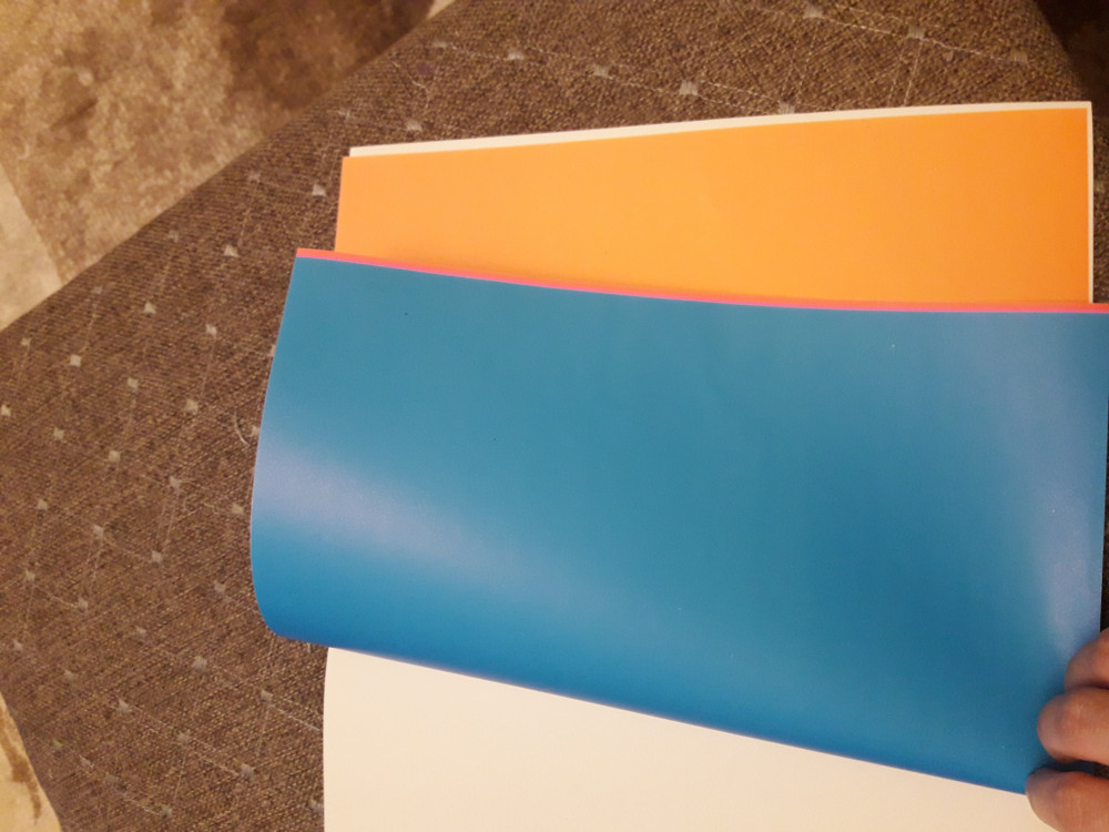 Цвета очень приятные, цветная сторона гладкая, матовая, обратная сторона белая, мелованная.