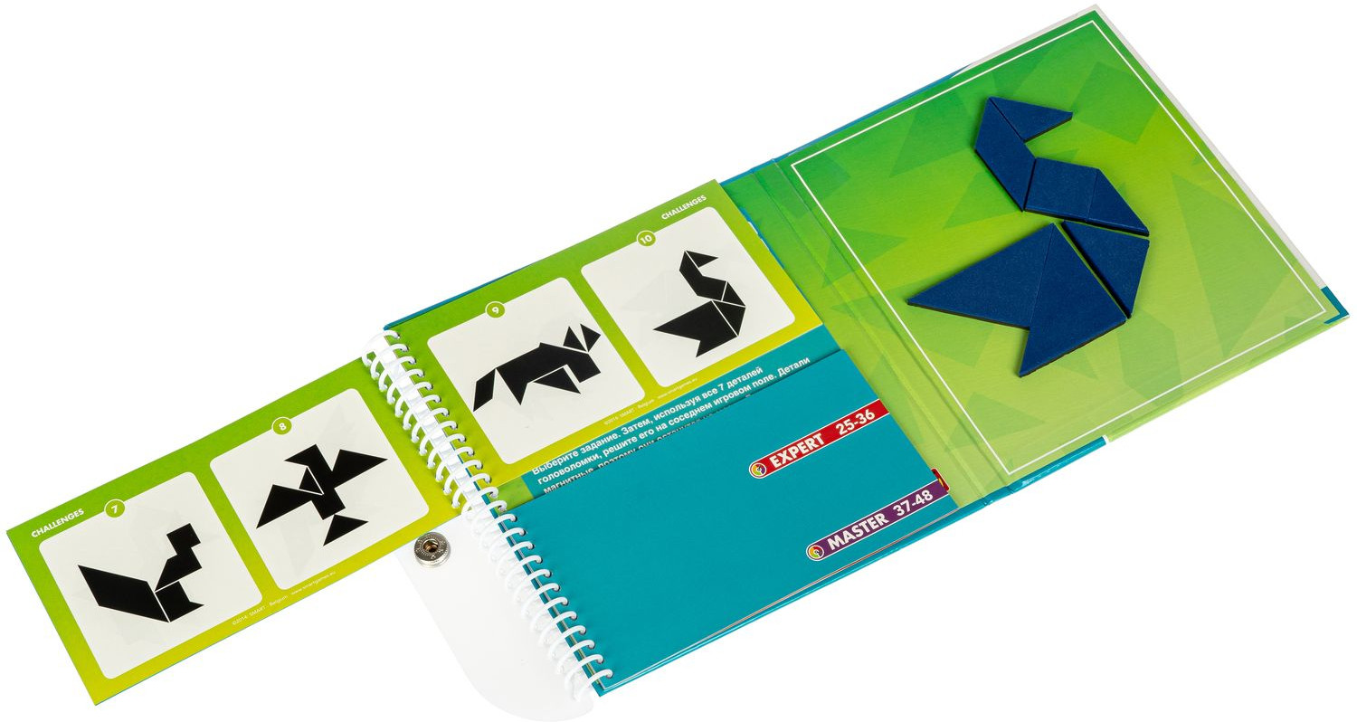 Хорошая вещь! Приобретена со знанием о данной технике развития ребенка. Указанный возраст 6+. Но я взяла для 5ти лет. Самое то. Там есть фигуры, которые представляют сплошную тень, без делений и ребенок более раннего возраста будет только расстраиваться, если не сможет сделать. 4 уровня сложности. Внутри есть карточки с заданиями и далее ответы к заданиям. Потому книжечка очень удобная! А так же располагает формат. Практически в любую сумочку можно положить, кроме клатча))))) дети довольны! Качество хорошее. Цена.... не во всех магазинах данный товар представлен. Потому как увидела- сразу взяла, сравнить не с чем)