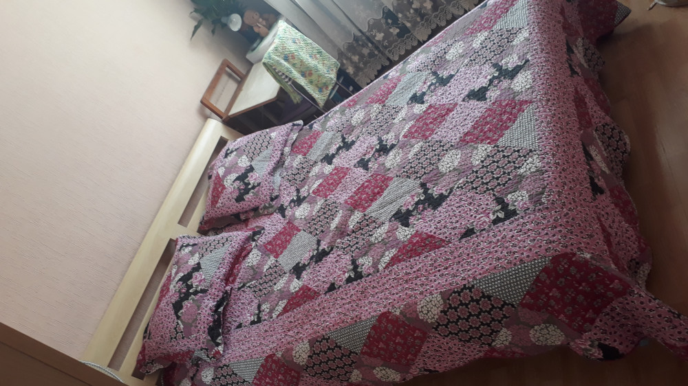 Покрывало отличное! После многократных стирок(многократных, т.к.дома маленькие дети) усадку не дало, цвет такой же ярко розовый. Покрывало качественное, строчки все ровные, приятно к телу, НЕ синтетика. Заказывала евро, на большую кровать, странно , но оказалось даже больше чем ожидала.