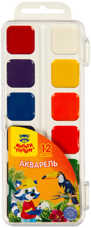 Краски обладают хорошей укрывистостью и остаются яркими при высыхании. Смешивание акварели «Мульти-Пульти» дает чистые оттенки. Натуральные компоненты делают акварель безопасной для здоровья детей.