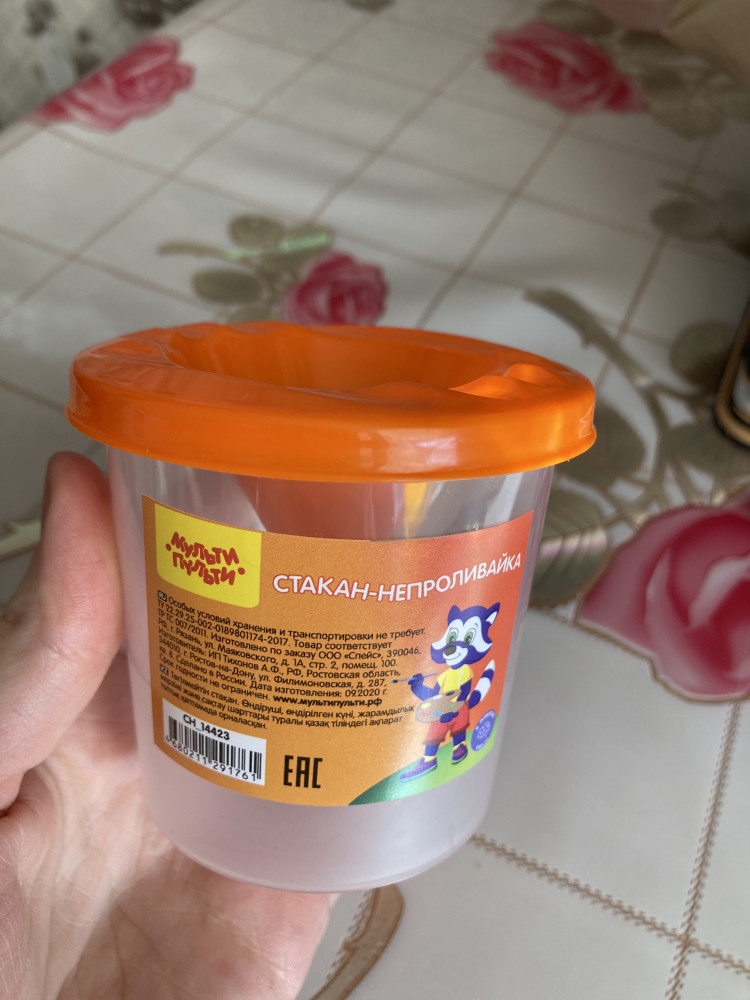 Мульти-Пульти Стакан-непроливайкаВ данный момент этот товар отсутствует в продаже. Возможно, у нас найдется аналогичный или похожий товар здесь. Идеален для использования при рисовании красками. Объем стакана оптимально подобран для обхвата детской рукой. Специальная форма стакана с плотно закрывающейся крышкой исключает возможность вытекания воды. Материал — полупрозрачный пластик, крышка оранжевого цвета. Полный объём — 150 мл, до уровня — 50 мл. |