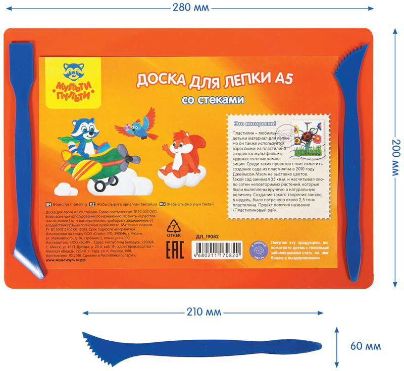 Мульти-Пульти Доска для лепки из пластилина со стекомВ данный момент этот товар отсутствует в продаже. Возможно, у нас найдется аналогичный или похожий товар здесь. Доска формата А4 предназначена для лепки из пластилина. Изготовлена из жесткого прочного пластика, устойчивого к царапинам. Имеет закругленные углы для безопасности маленького скульптора. Гладкая поверхность. Упакована в термоусадочную пленку с ярким вкладышем и двумя цветными стеками. |