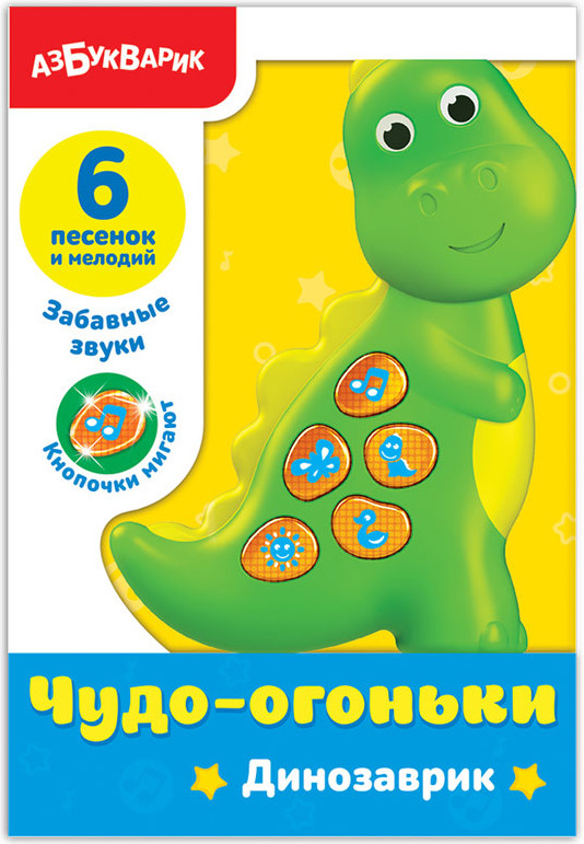 💳 Оплатить за товар можно при получении 🇰🇿 Есть бесплатная доставка по Казахстану от 1 дня 🎁 Копите бонусы с каждой покупки Серия: Чудо-огоньки Яркий музыкальный динозаврик — плеер для самых маленьких. На кнопочках игрушки — 6 песенок и мелодий («Если нравится тебе, то делай так», «Какой чудесный день», «Два весёлых гуся» и др.), забавные звуки. Огоньки мигают под музыку и дарят радость малышам. Бонус! 15 интерактивных потешек от «Азбукварик» — в подарок. По QR-коду на упаковке скачай бесплатно приложение на смартфон или планшет. |