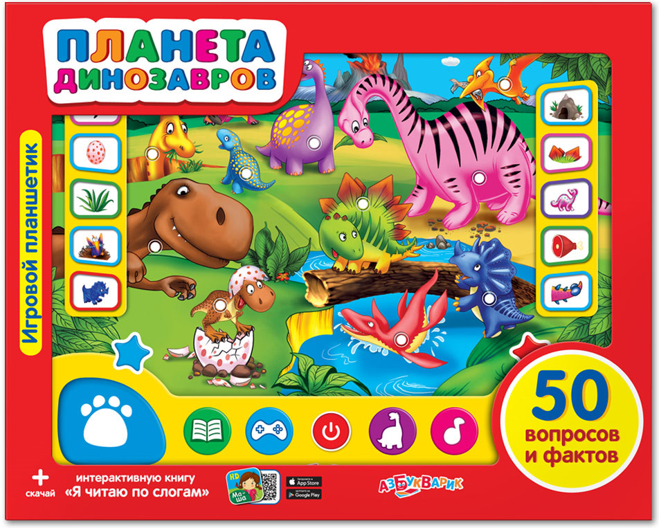 Азбукварик Игрушка музыкальная «Планета динозавров»В данный момент этот товар отсутствует в продаже. Возможно, у нас найдется аналогичный или похожий товар здесь. Серия: Планшетик Этот говорящий планшетик — прекрасный подарок для любознательный малышей. Нажимая на яркие картинки, ребёнок познакомится с удивительными динозаврами, узнает о них много интересного, послушает голоса и звуки. Весёлые игры («Диновикторина» и «Приключения динозавриков») помогут проверить знания и расширить кругозор. А в «Диновикторину» можно играть вдвоём и соревноваться друг с другом! Бонус — интерактивная книга от Азбукварик «Я читаю по слогам». Скачай бесплатно приложение на смартфон или планшет. QR-код для скачивания — на коробке. |