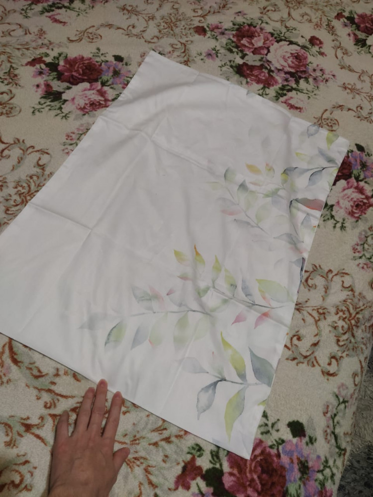 Ткань очень приятная на ощупь, плотная, гладкая. Заказывала две наволочки, они не абсолютно одинаковые по рисунку. У одной изнаночная сторона чисто белая, у другой рисунок на полнаволочки, дальше белый. Ожидала, что все таки оборотная сторона наволочки тоже будет с рисунком.