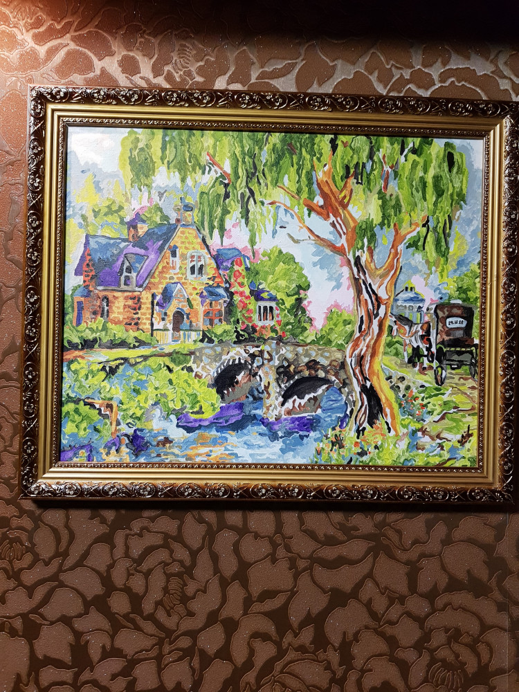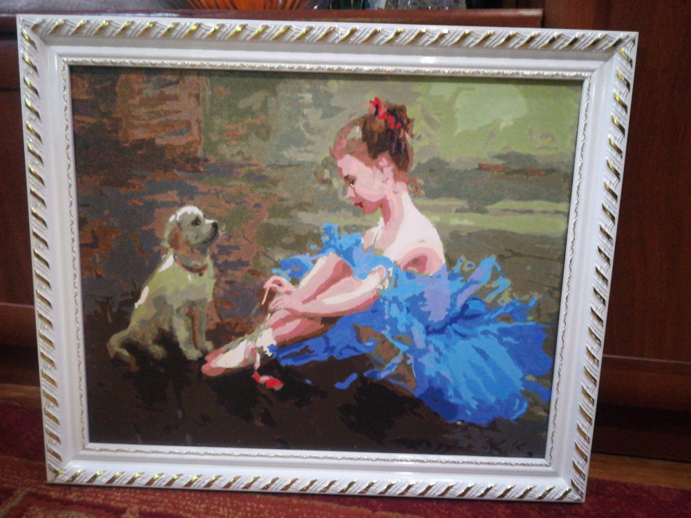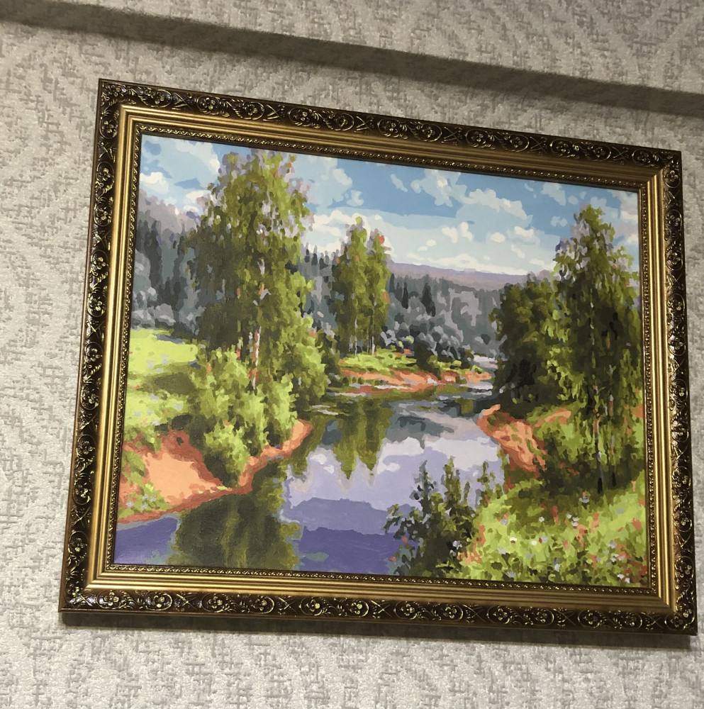 Покупала на флипе картину по номерам размером 40х50. Рамка пришлась как раз впору. Пришла с другим рисунком, но я не в обиде. Тоже очень красивая.