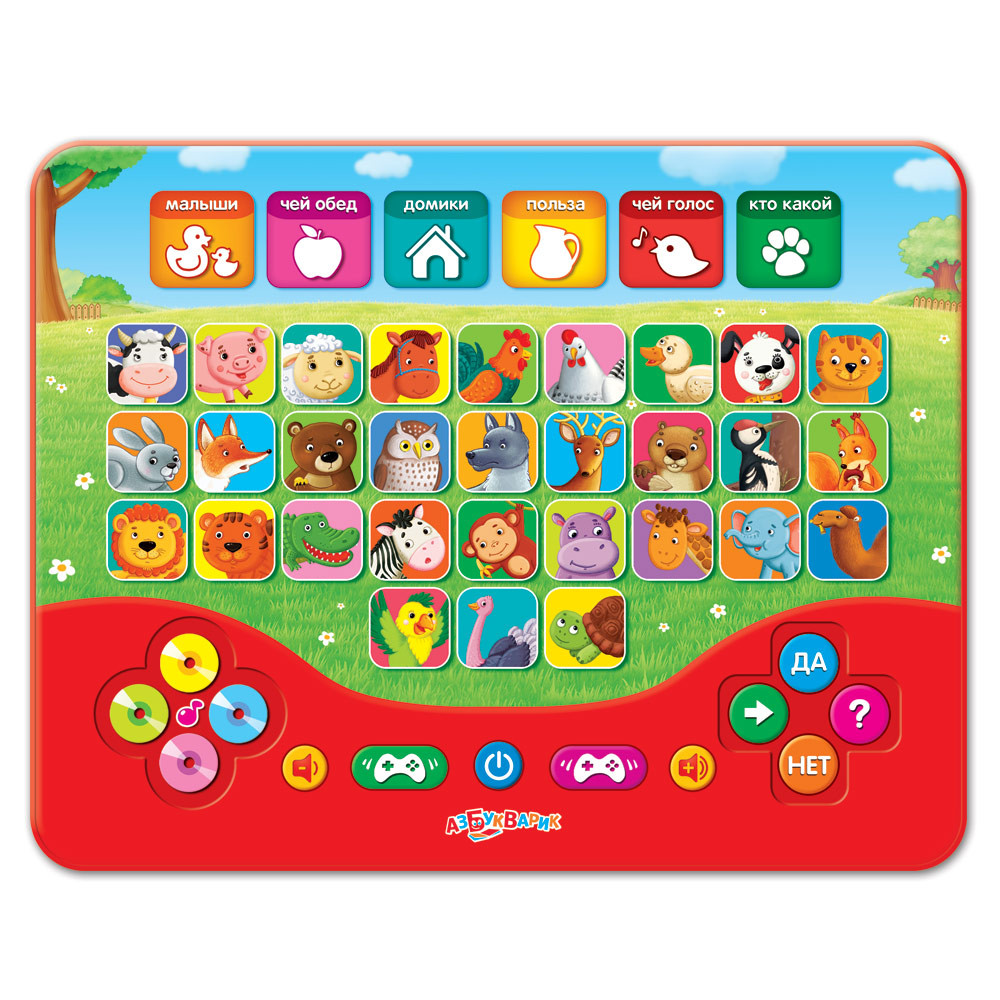 Азбукварик Игрушка музыкальная «Зоовикторина»В данный момент этот товар отсутствует в продаже. Возможно, у нас найдется аналогичный или похожий товар здесь. Серия: Планшетик Ваш малыш хочет знать всё о животных? Тогда пусть попробует выиграть Зоовикторину вместе с новым игровым планшетиком! В нем собрано более 200 вопросов и загадок о зверюшках фермы, леса и зоопарка. Выбирай одну из 8 увлекательных игр: «Весёлая викторина», «Да-нет», «Чей малыш», «Чей домик», «Чей обед», «Чей голос», «Какая польза», «Кто какой». Хочешь сделать паузу? В планшетике есть мини-плеер с любимыми песенками: «Песенка про кузнечика», «Пусть бегут неуклюже», «Чунга-чанга» и «Улыбка»! Играй, учись и веселись! Найди вкладыш с QR-кодом внутри коробки — скачай бесплатно 20 интерактивных загадок! |
