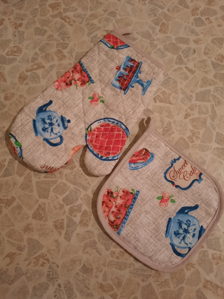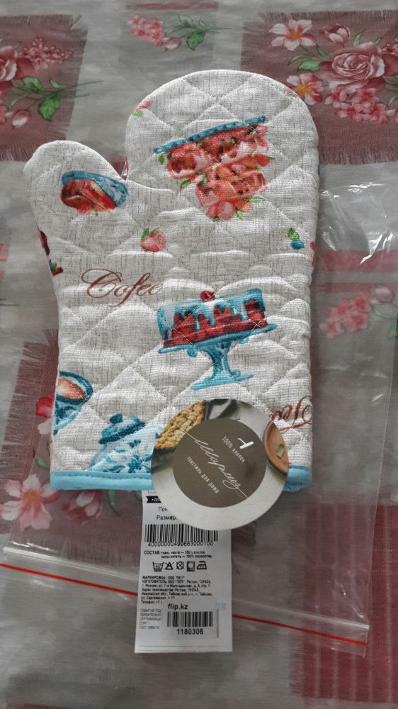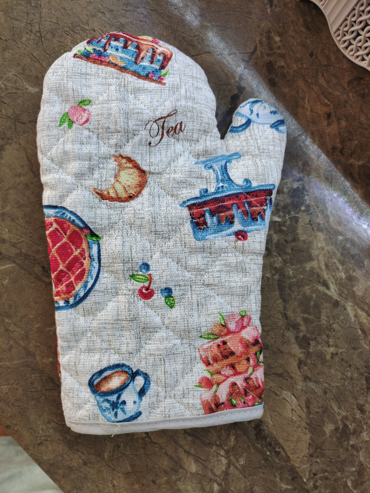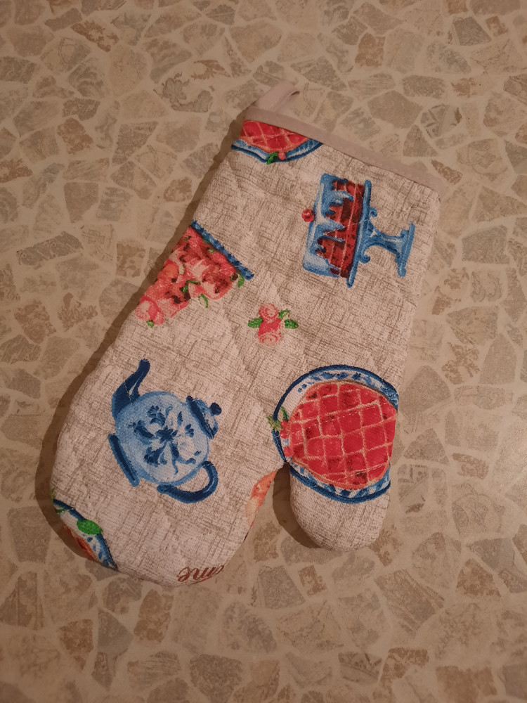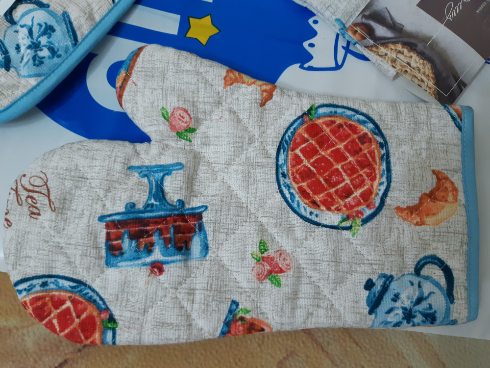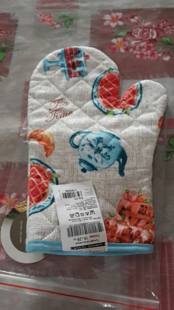 Руковичка красивая, правда тонковата....все равно оставила себе, дополнительно брала прихватки и фартук, смотрится на кухне хорошо, миленько)