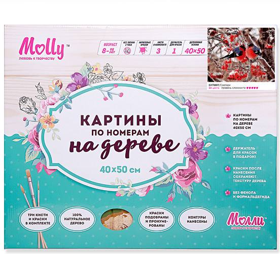 Molly Набор для раскрашивания по номерам на дереве «Снегири» (40×50 см)В данный момент этот товар отсутствует в продаже. Возможно, у нас найдется аналогичный или похожий товар здесь. Серия: Картины по номерам на дереве Набор для рисования по номерам Molly — это интеллектуальное рисование. Просто взяв в руки краски и, следуя нумерации на фрагментах картинки, вы создаете оригинальный рисунок. Раскраска по номерам учит штриховать рисунки в заданных областях и раскрашивать их, не заходя за контур, концентрироваться на отдельных предметах. |