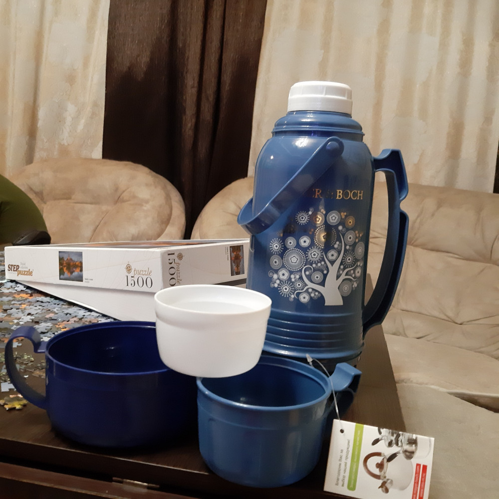 Заказывала для мамы. Очень быстро пришёл, Флип, спасибо! Внешний вид великолепный! Даже и не скажешь, что стоит совсем не дорого. Как держит тепло не знаю, мамуля им пока не пользовалась.