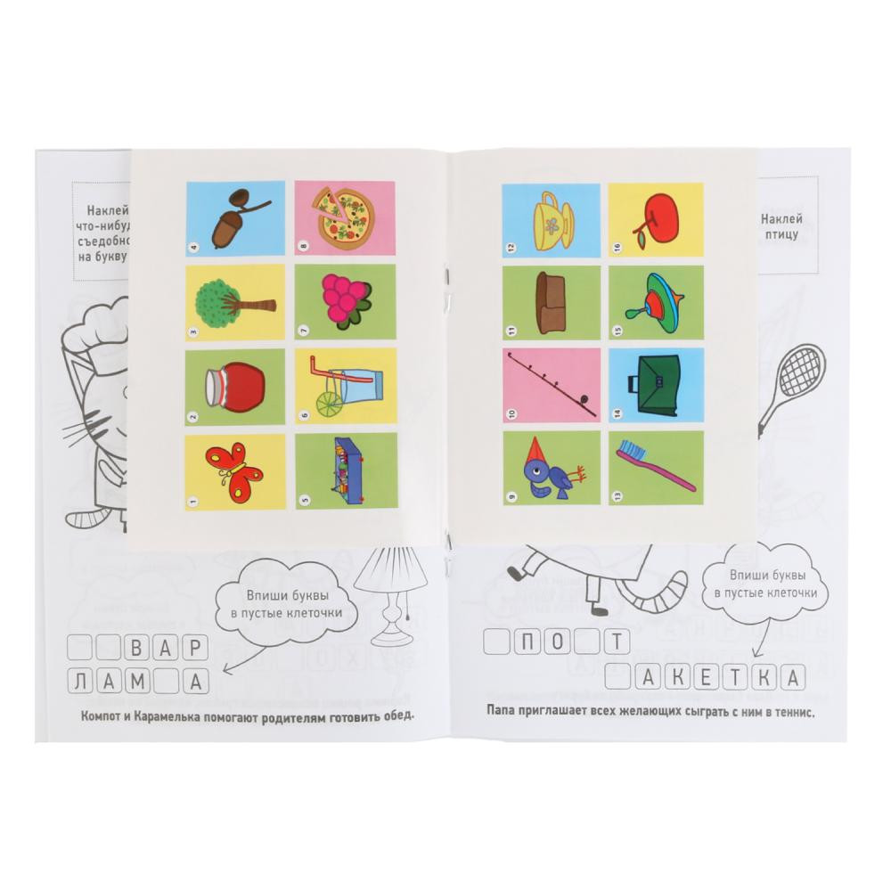 Очень маленькая (формат) и для детей, которые умеют уже читать и заполнять пробелы, но в таком возрасте уже не интересно раскрашивать и клеить наклейки. Сразу не увидела, что в комплекте идёт всего 16 наклеек, выбранных рандомно, т.е. не на все буквы и в выборе нет логики. Не для занятий, чисто для развлечений.