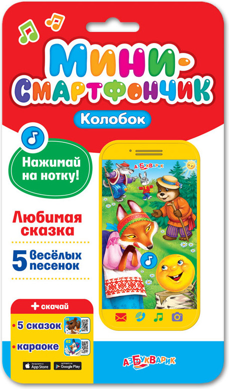 Азбукварик Игрушка музыкальная «Колобок»В данный момент этот товар отсутствует в продаже. Возможно, у нас найдется аналогичный или похожий товар здесь. Серия: Смартфончик Этот мини-смартфончик идеально подойдёт самым маленьким благодаря небольшому размеру и закруглённым уголкам. Малыш сможет подружиться с весёлым Колобком и послушать любимую сказку и 5 задорных песенок-потешек: «Заинька, попляши!», «Волк-волчок», «Мишка косолапый», «Топ-топ, топотушки», «Колобок». |