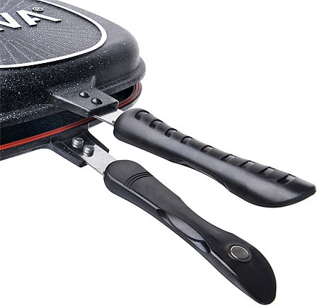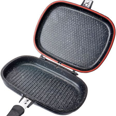 Mayer & Boch Сковорода-двойная (28×6 см)В данный момент этот товар отсутствует в продаже. Возможно, у нас найдется аналогичный или похожий товар здесь. Сковорода с мраморной крошкой выполнена из качественного литого алюминия и снабжена антипригарным покрытием особой прочности. Больше не нужно переворачивать еду, теперь можно переворачивать всю сковороду целиком. Эргономичные ручки с магнитной защелкой для безопасного приготовления пищи и удобной переноски. Силиконовый уплотнитель не позволяет сокам вытечь или испариться, тем самым удерживая тепло и сохраняя вкус продуктов. Также в наборе идет запасная резинка. Антипригарное покрытие легко чистить даже без использования специальных моющих средств. Сковорода прекрасно подходит для приготовления мяса и рыбы, стейков, овощей и даже выпечки. Пищу можно готовить без использования растительного масла. При желании сковородка делится на две раздельные емкости одинаковой вместимости. |