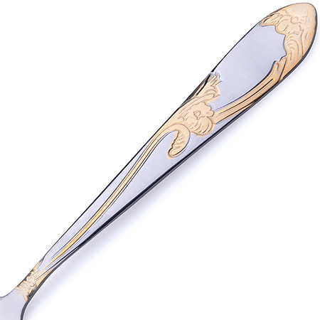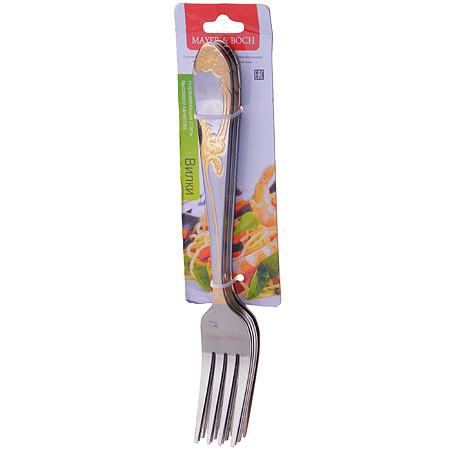 Набор из 6-ти столовых вилок выполнен из высококачественной нержавеющей стали, которая проходит тщательный технический контроль. Качественная полировка обеспечивает высокую степень гигиеничности приборов. Приборы из нержавеющей стали отличаются высокими антикоррозионными свойствами и значительной устойчивостью к воздействию кислот и щелочей. Такая сталь не изменяет вкус и цвет пищи, не выделяет вредных веществ. Ручки вилок украшены элегантным золотым узором, выполненным по технологии плазменного напыления и обеспечивающим высокую износостойкость покрытия.