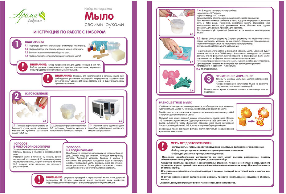 Арома фабрика Мыло своими руками «Морские приключения»В данный момент этот товар отсутствует в продаже. Возможно, у нас найдется аналогичный или похожий товар здесь. Набор для мыловарения «Морские приключения» из серии «Spa Студия» от компании «Развивашки» представляет собой предмет для занятия творчеством. Следуя пошаговой инструкции, ребенок своими руками сможет создать разноцветное мыло пяти разных форм. Творческое занятие принесет ребенку море положительных эмоций и поможет совершенствовать моторику пальцев. |