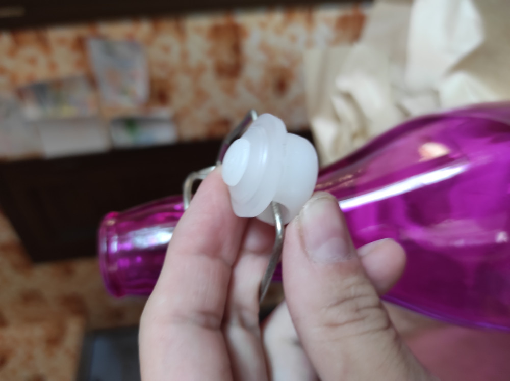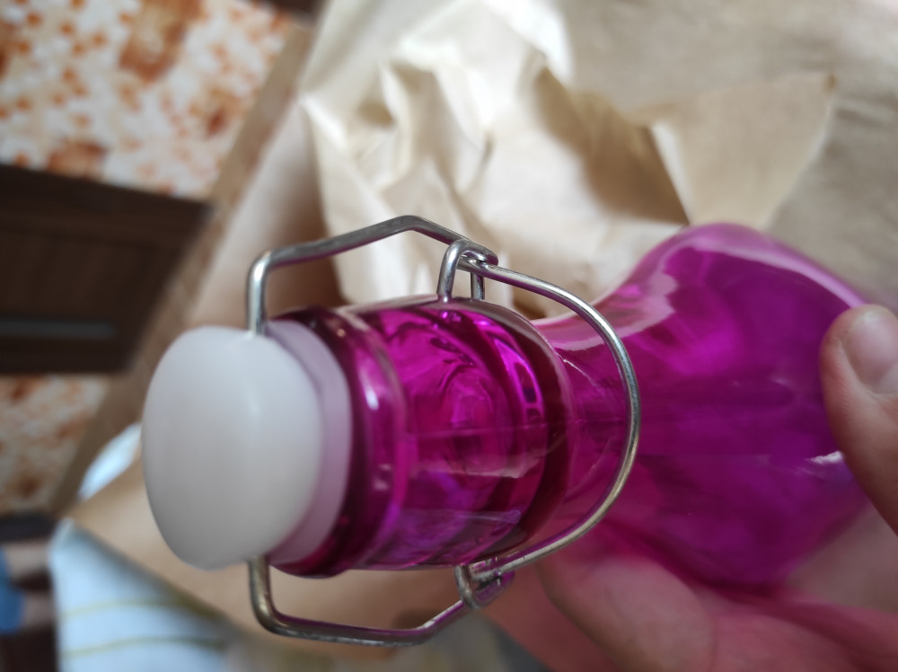 Бутылка красивая, пробка плотно прилегает к бутылке. Единственный минус - заказывала красную, а пришла розовая.