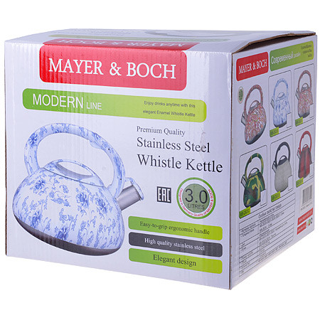 Mayer & Boch Чайник со свистком (3 л)В данный момент этот товар отсутствует в продаже. Возможно, у нас найдется аналогичный или похожий товар здесь. Чайник изготовлен из высококачественной нержавеющей стали. Изделия из нержавеющей стали не окисляются и не впитывают запахи, благодаря чему вы всегда получите натуральный, насыщенный вкус и аромат напитков. Ручка выполнена из бакелита. Носик чайника оснащен насадкой-свистком, который позволяет контролировать процесс кипячения или подогрева воды. Поверхность чайника гладкая, что облегчает уход за ним. |