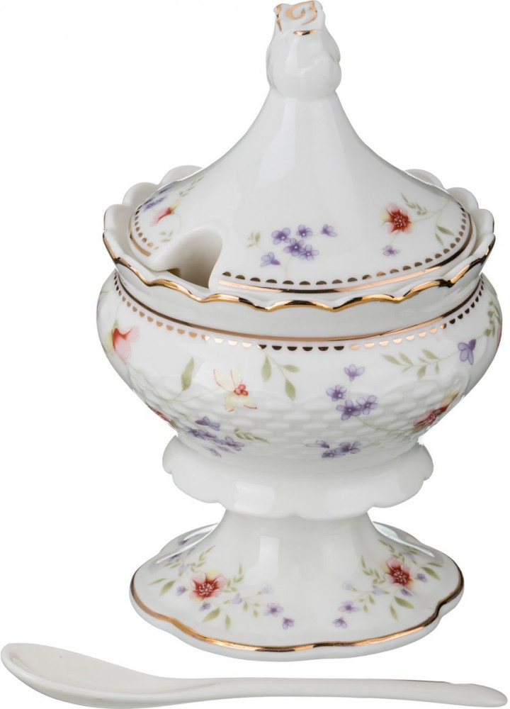 Сахарница с ложкой станет украшением вашего стола. Красивое оформление стола как праздничного, так и повседневного — это целое искусство. Правильно подобранная посуда — это залог успеха в этом деле. Такая сахарница придется по вкусу даже самым требовательным хозяйкам и придаст особый шарм и очарование сервируемому столу.