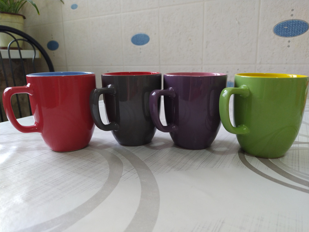 Очень красивые и качественные кружки. Собрала весь набор цветов в этом объеме, долго ждала голубой цвет. Цвета не все такие яркие, как в карточке товара, но это совсем их не портит.