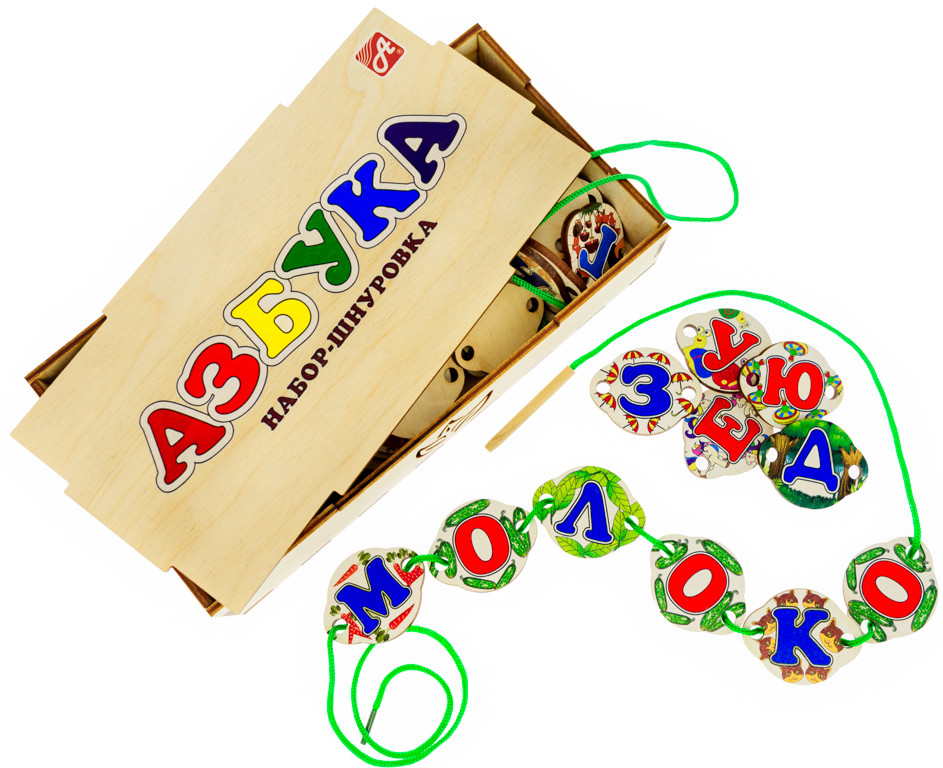 Замечательный набор-шнуровка из дерева Азбука— не только интересная, но и познавательная игра для девочек, мальчиков, их заботливых родителей и родственников.