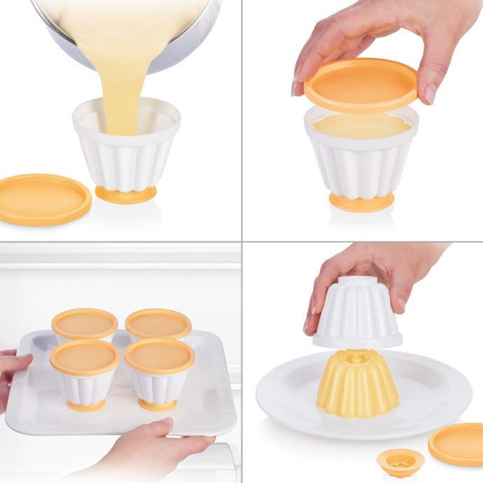 Удобны для приготовления желе и пудинга. Не протекают. При хранении занимают мало места-складываются компактно. Легко мыть. Заказала ещё один комплект.