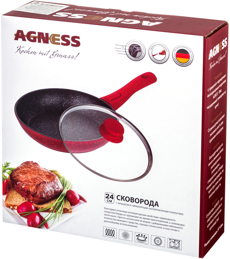 Agness Сковорода с крышкой и съемной ручкой (диаметр 24 см)