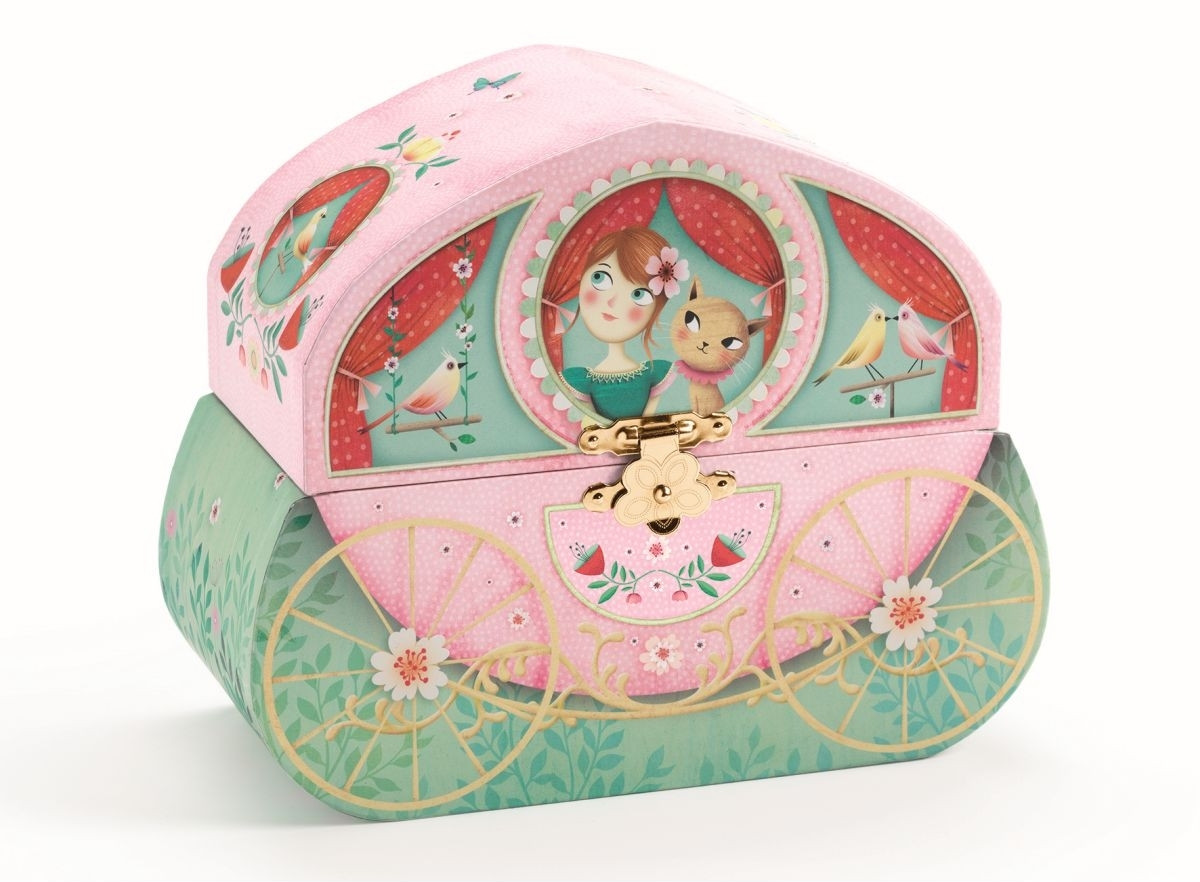 Djeco Музыкальная шкатулка «Карета»В данный момент этот товар отсутствует в продаже. Возможно, у нас найдется аналогичный или похожий товар здесь. Идеально подходит для хранения детских украшений, это красиво оформленная музыкальная шкатулка в виде кареты, при открытии шкатулки милая девочка танцует под великолепную мелодию. Шкатулка имеет несколько отсеков для хранения бижутерии: колечек, браслетов и т.д. Набор изготовлен из безопасных высококачественных материалов. Продается в яркой подарочной упаковке. |