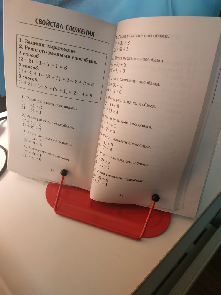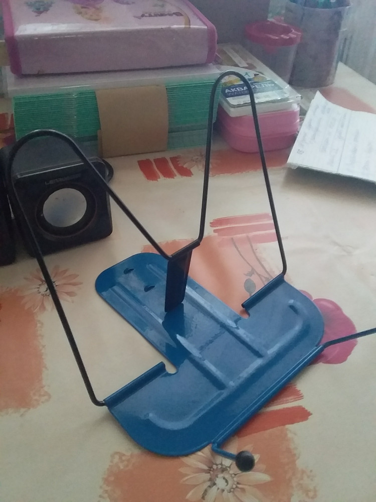 Не припомню, чтобы у меня в детстве была какая-либо подставка для книг, как то обходились без неё, потому эту приобретала из интереса. Поначалу, установив в неё букварь(формат а4), показалось, что я сделала бесполезное приобретение. На вид кажется, что она сейчас упадёт, легковата она для тяжёлых книг, но все-таки она не падает, не сдаётся)) плюс, когда сын двинул её вместе с книгой, одна из приклеенных ко дну противоскользящих наклеек отклеилась, но мы это легко исправили. В итоге, понаблюдав, я увидела, что ребёнку с ней очень удобно и комфортно, теперь перед каждым занятием просит эту подставку. Нам пришла красная, качество отличное, металл по краям обработан отлично. Советуем.