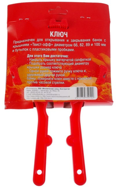 Механический завод «Конструктор» Ключ для крышек «Твист-офф» для консервирования-40% +6 легко открывает удобный крепкий пластик плотно ложится
