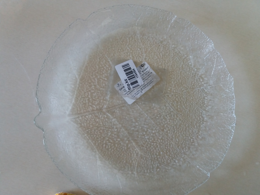 Пришла тарелка не много грязная от наклейки которую мы содрали. Вид не товарный. На подарок хотела, не пойдет. Стекло тонкое.