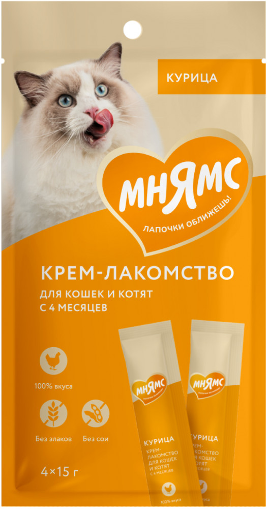 | Мнямс Крем-лакомство для кошек с курицей (15 г × 4 шт)