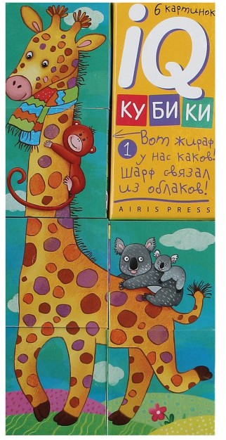 Кубики классные, необычные. Собираются кубики по форме фигуры на картинке, а не в стандартный прямоугольник. Рисунки яркие, красочные. Можно детям с 3х лет, так как там всего 6 кубиков. Из минусов только то, что они пластмассовые (я думала деревянные) и наклеенные рисунки потихоньку отклеиваются, впрочем все игрушки недолговечны.